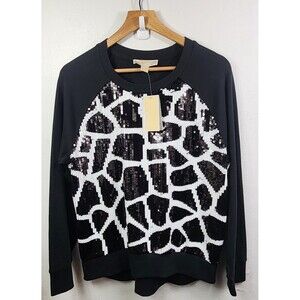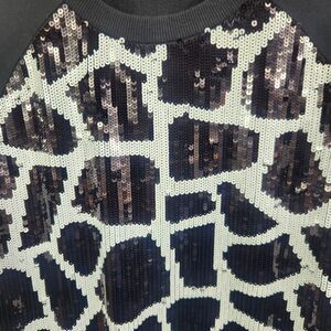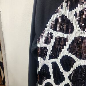 Michael Kors Sequin Leopard Print Sweater Black White L