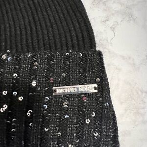 Michael Kors Sequin Stripe Cuff Hat Beanie Black One Size