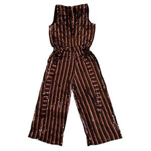 Michael Kors Sequin surplice Jumpsuit M Stretch Crop Wide Leg Sleeveless 7796