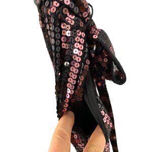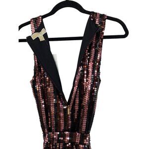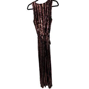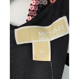 This Michael Kors, Size Medium, jumpsuit is designed for contemporary elegance, featuring a striking sequin embellishment. Its sleeveless style and belt accentuate a flattering fit, ideal for evening wear. The viscose shell and polyester lining promise comfort and durability, while its black, burgundy, pink color scheme offers a sophisticated aesthetic.