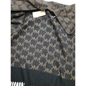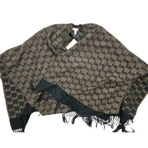 Michael Kors Shawl MK Logo Jacquard Cape Wrap Poncho One Size Brown Black