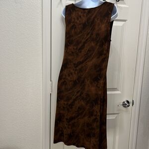 Michael Kors sheath dress size large scoop, neck, slave rushed, slimming, midi, dress black brown slip on