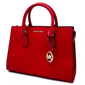 Michael Kors Sheila Medium Center Zip Satchel Bag Bright Red