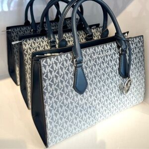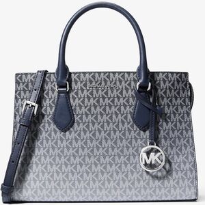 Michael Kors Sheila Medium Ombré Signature Logo Satchel Bag Navy Blue Multi