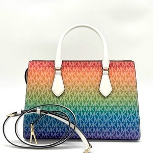 Michael Kors Sheila Medium Rainbow Signature Logo Satchel Bag Rainbow
