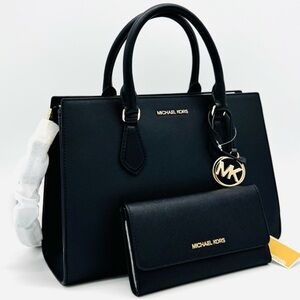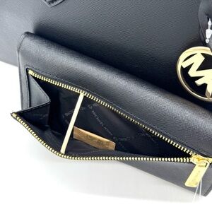 Michael Kors Sheila Medium Satchel Bag & Large Trifold Wallet Black/Gold