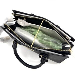 MK signature logo PVC coated canvas body and Saffiano leather inside.