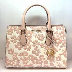Michael Kors Sheila Medium Sequined Floral Satchel Bag Powder Blush Multi