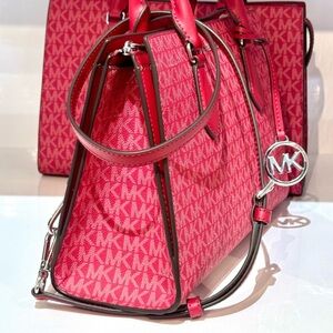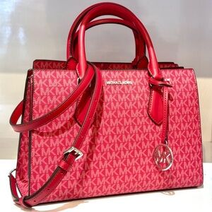 Michael Kors Sheila Medium Signature Logo Satchel Bag Dark Raspberry Multi