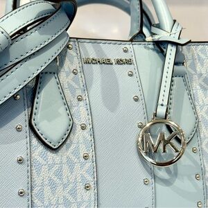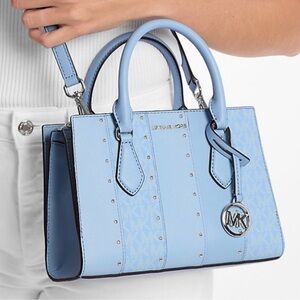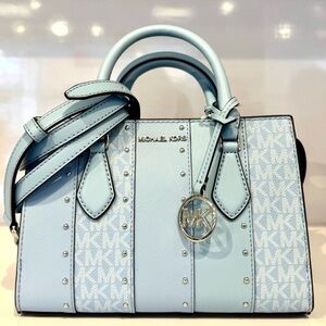Michael Kors Sheila Small Studded Signature Logo Satchel Bag Light Sky Blue