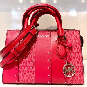 Michael Kors Sheila Small Studded Signature Logo Satchel Dark Raspberry Multi
