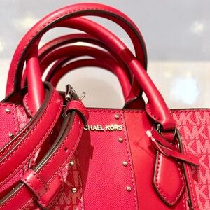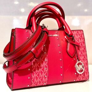 Michael Kors Sheila Small Studded Signature Logo Satchel Dark Raspberry Multi