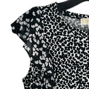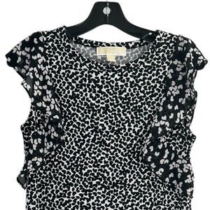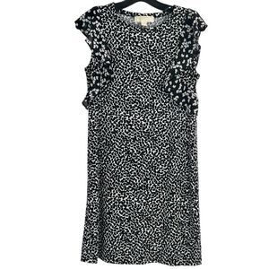Michael Kors Shift Dress Black Whte Flutter Sleeve Animal Casual Party