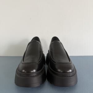 Michael Kors Shiloh Black Leather Chunky Lug Sole Platform Loafers