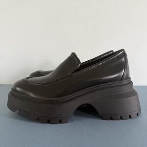 Michael Kors Shiloh Black Leather Chunky Lug Sole Platform Loafers