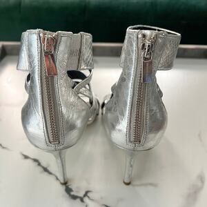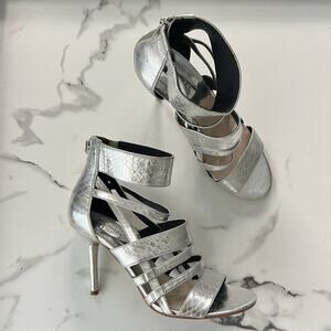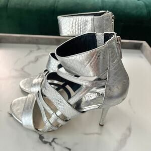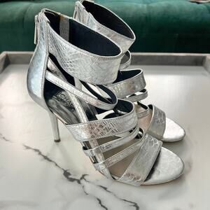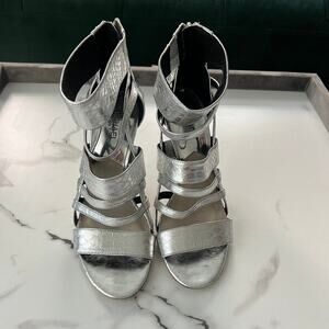 Michael Kors Shiloh Metallic Silver Snakeskin High Heel Sandals Size 9.5
