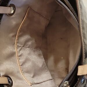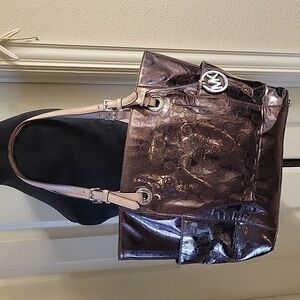 Stylish Michael Kors tote bag in shimmery/metallic copper and tan. Perfect for everyday use with a chic design. Used and in good condition.