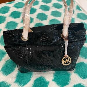 Michael Kors Shiny Black Snake-Pattern Tote 👜