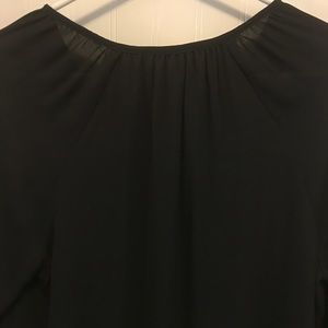 Michael Kors black lined top with zip top front and two decorative ties, elastic sleeves.