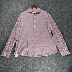 Michael Kors Shirt Mens 17 Regular Fit Airsoft Stretch Button Up Red Check