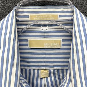 Michael Kors Shirt Mens Large 16 34/35 Blue Button Up Striped Long Sleeves