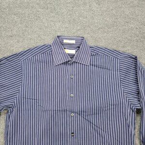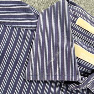 Michael Kors Shirt Mens Large 16 34-35 Blue Striped Button Up Long Sleeve Preppy