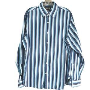Michael Kors Shirt Size L Button Up Blue Striped 100% Cotton Long Sleeves