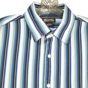 Enhance Your Style with Michael Kors Blue Striped Button-Up Shirt! 👔
