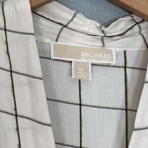 Michael Kors Shirt Size XL Ivory Windowpane Plaid White Metallic Gold Popover