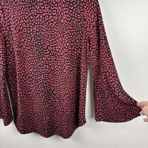 Michael Kors Shirt Womens M Black Red Leopard Spot Long Sleeve Keyhole Stretch