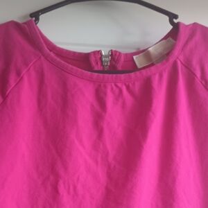 Michael Kors Shirt Womens Small Pink Cotton Short Sleeve Round Neck Back Zip