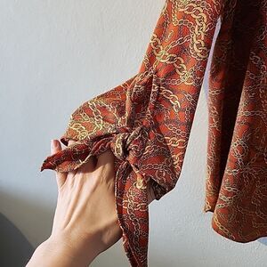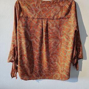 Michael Kors Shirt Womens Medium Orange Gold Chains Blouse Top Nice