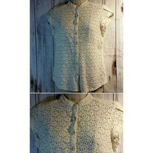 Michael Kors Shirt Ladies Small Cream Lace Button Front Capped Sleeve