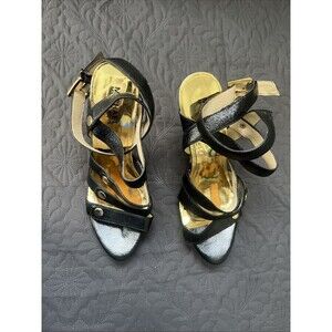 Michael Kors Shoes Black Patent Leather Strappy Heels Sandals w/cork SZ 9M Chic