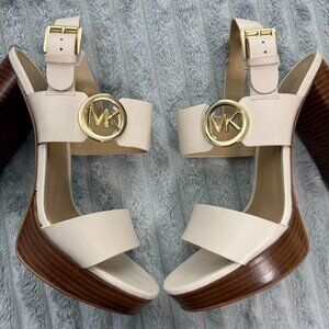Michael Kors Shoes Womens 9 Ivory Leather Retro Platform Sandal Adjustable SG21L