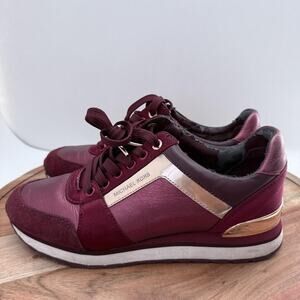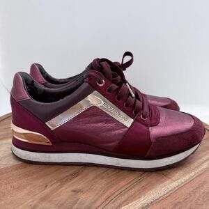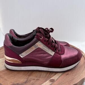 Michael Kors Shoes Womens Size 7.5 Burgundy Rose Gold Trainer Sneakers HX18F