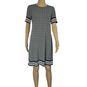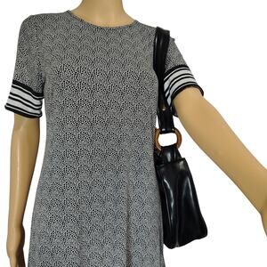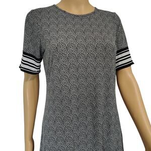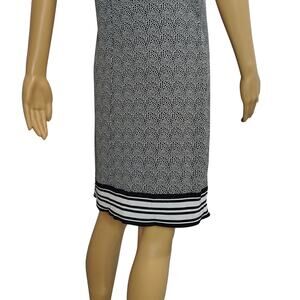 Michael Kors Short Sleeve Black White Midi Sheath Dress Stripes Size Small