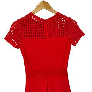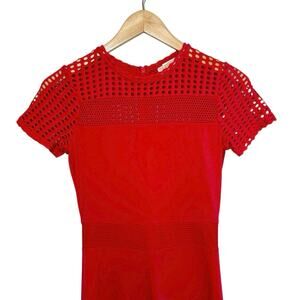 Michael Kors Short Sleeve Mesh Panel Fit and Flare Mini Dress Red Evening Party