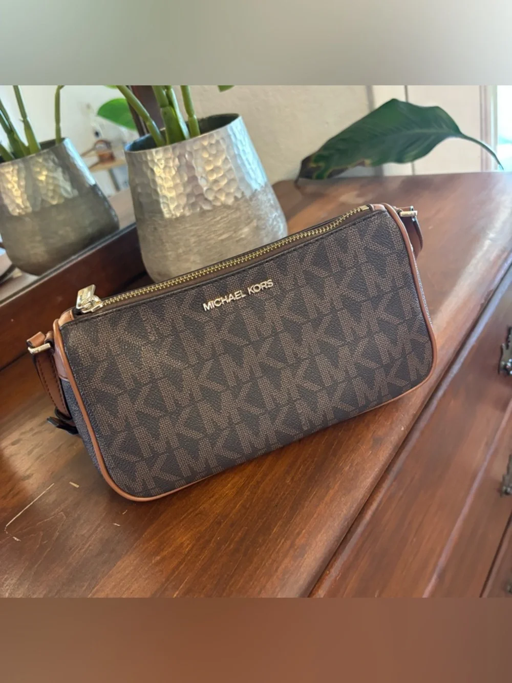 Michael Kors logo shoulder bag. Some wear on the strap and zipper pull tab as shown but in really good condition still.