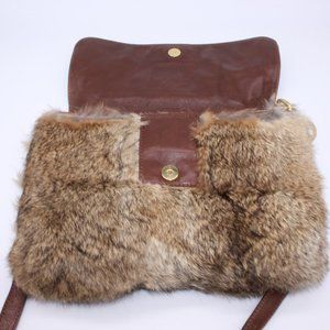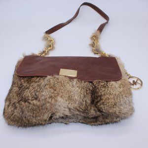 Michael Kors Shoulder Bag Purse Logo Satchel Brown Leather Rabbit Fur Messenger