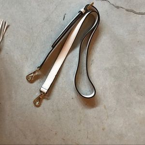Leather. Like new. Comes with strap to wear adjustable.