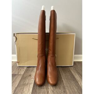 Michael Kors Side Zip Logo Buckle Carmen Leather Tall Riding Boots Luggage Sz 7M