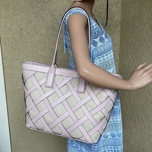 Michael Kors Sienna Large Tote Shoulder Bag Powder Blush Leather Canvas