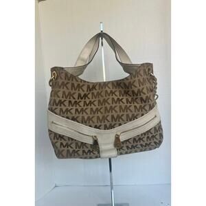Michael Kors Signature Brown Canvas with White Leather Shoulder/Hand Bag Purse