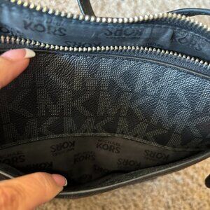 Black signature canvas Michael Kors Handbag/Shoulder Bag with silver hardware.