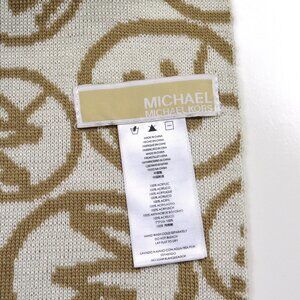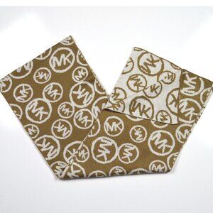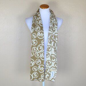 Michael Kors Signature Circle Reversible Knit Logo Scarf. Tan and ivory.