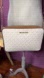 Stylish Michael Kors crossbody with signature pattern. Cream and tan colors. Adjustable strap for comfort.