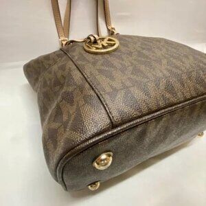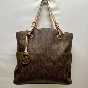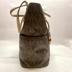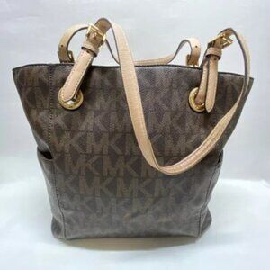 Michael Kors Signature Jet Set East West Top Zip Tote Brown Khaki Saffiano EUC