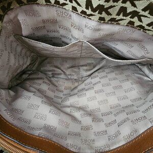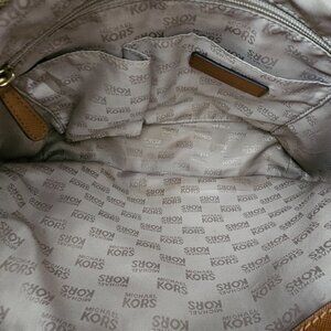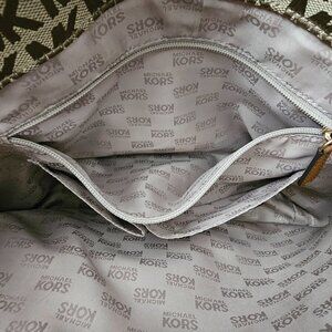 Michael Kors Signature Jet Set Pocket Jacquard Leather Brown Shoulder Bag COA