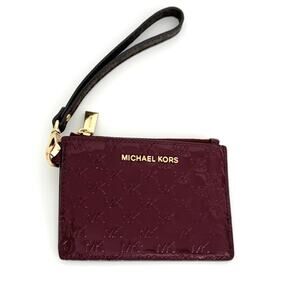 Michael Kors Signature Jet Set Small Leather Coin Wallet ID Wristlet Merlot